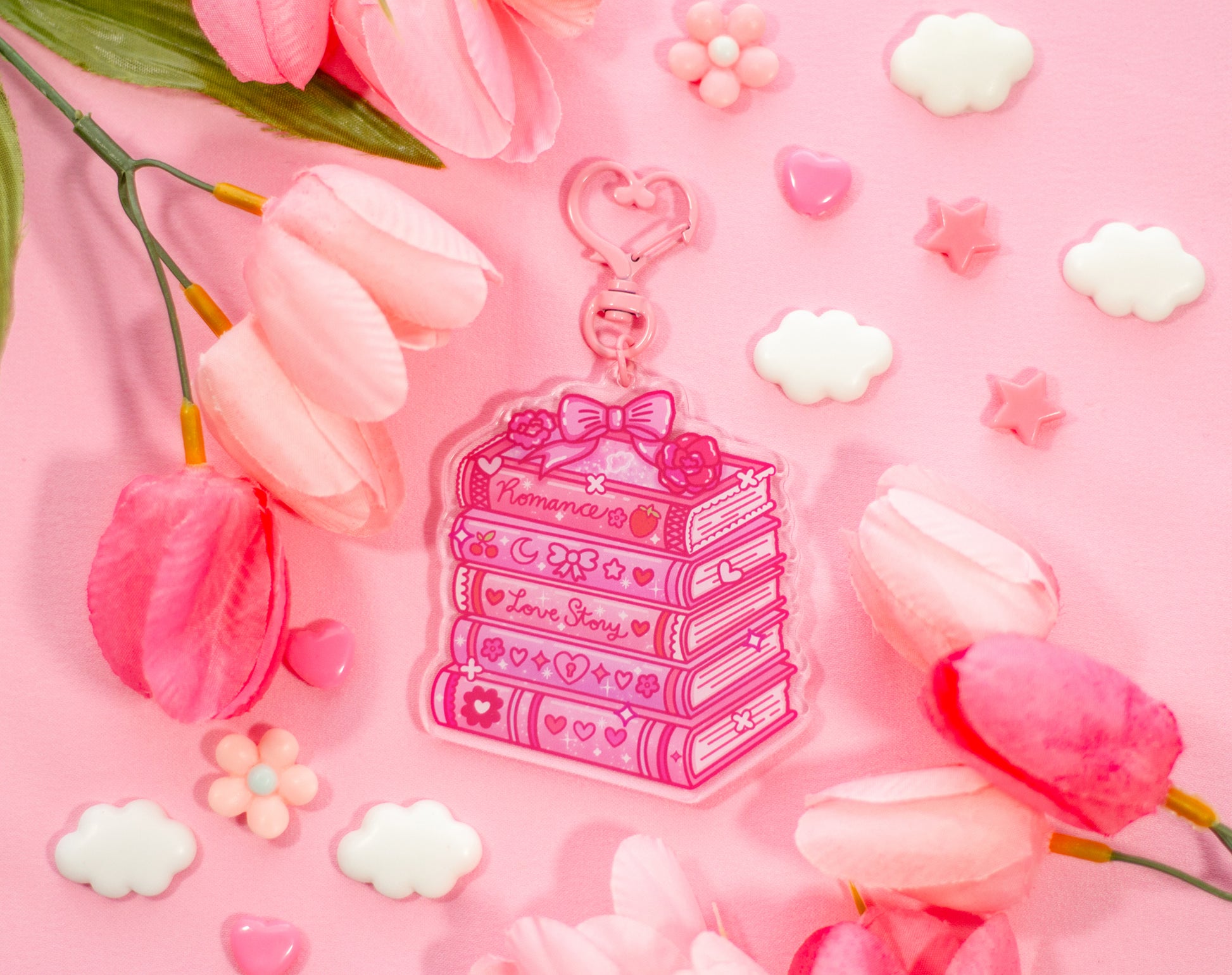 Romance Stacked Books Keychain